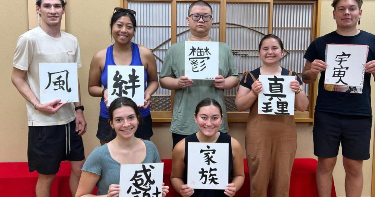 その後日本の『和』を感じてもたいたく、習字に挑戦し、各自好きな文字を書いてもらいました。